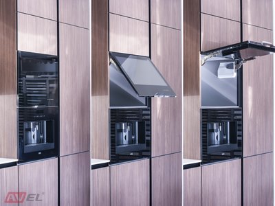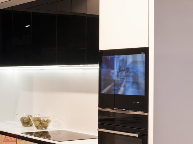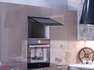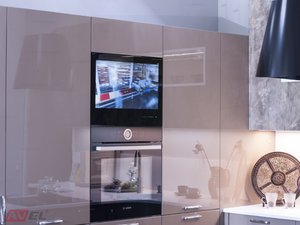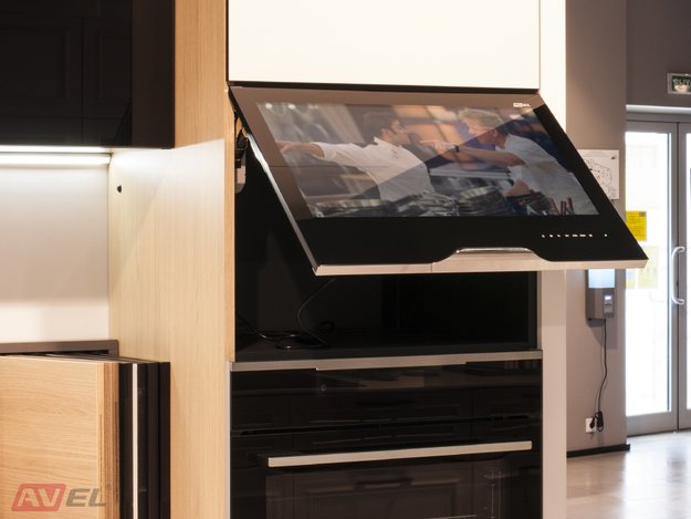 We are glad to show you photos of 23.8" Black Frame Cabinet Door Smart TV that was installed in the showrooms of one of our partners.